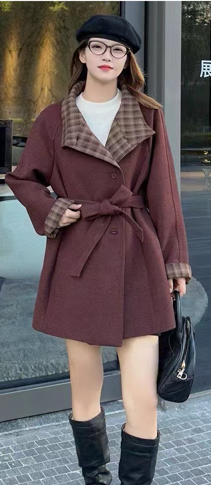 格子撞色风衣外套女欧洲站2024年秋季新款韩版腰带显瘦中长款上衣