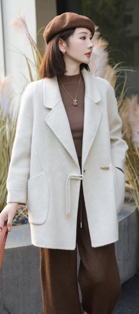 双面羊绒大衣女韩系宽松版牛角扣呢子外套2024秋冬新款加厚双面呢